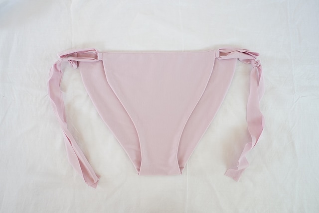 cotton100%knit series 紐は、スライド式にしてあり 長さはお好みの長さにハサミで切ってもらって◎ ほつれるなどはないです。 ボトムにショーツライン響かせたくないって方には特におすすめです。 紐をあえて腰骨に引っ掛ける形で 履いても◎