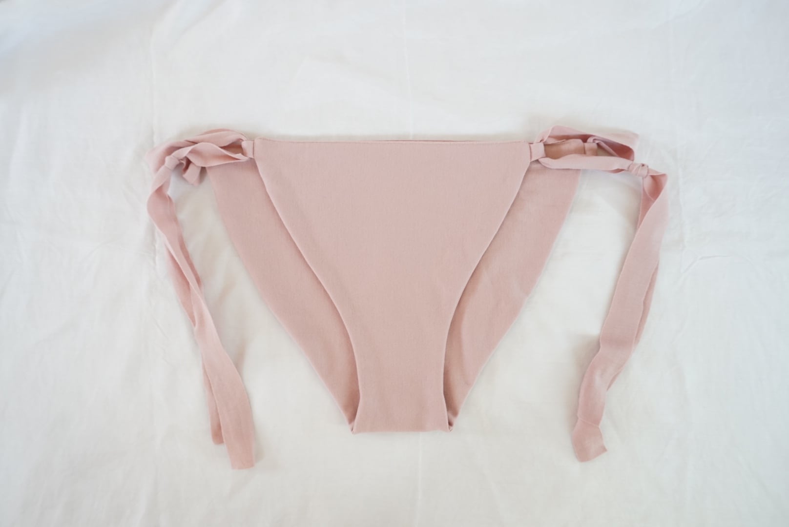 紐をあえて腰骨に引っ掛ける形で